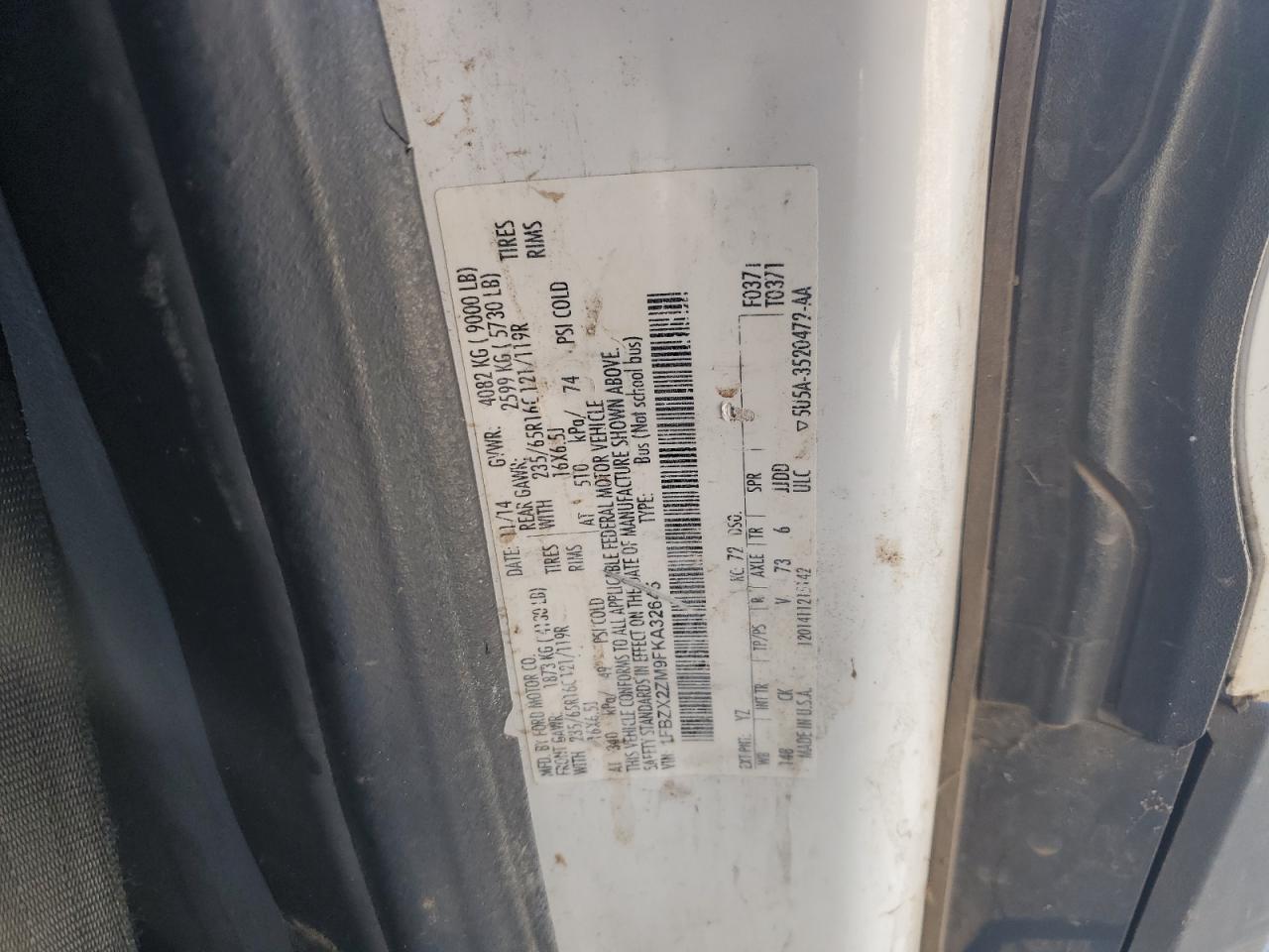 2015 FORD TRANSIT 2015 року Бензин, 3.7, Задній привід, vin - 1FBZX2ZM9FKA32645 з США
