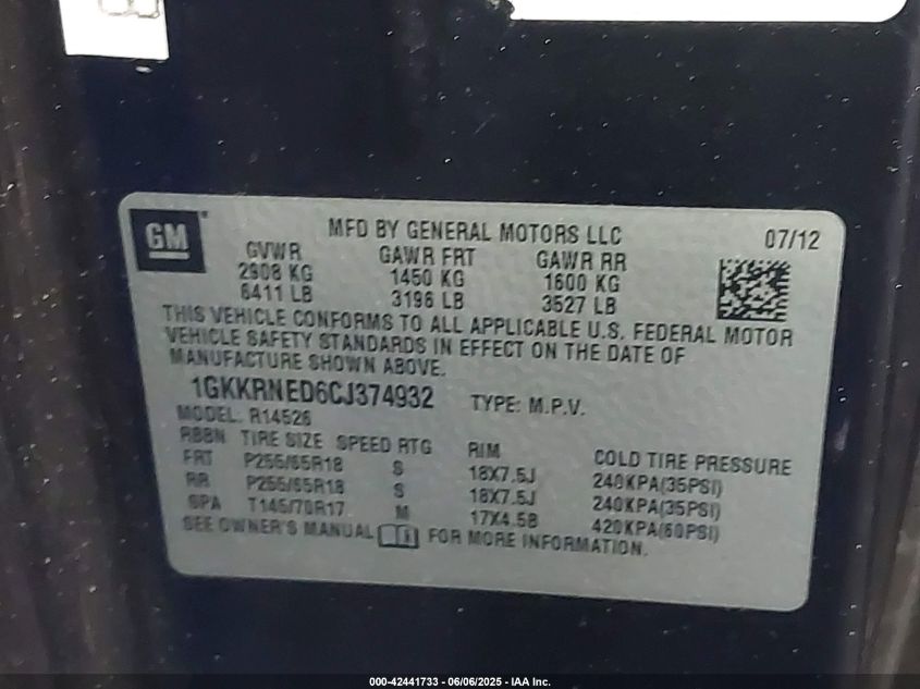 Колір СинійЦиліндри 6Привід Передній привідVIN 1GKKRNED6CJ******Стан НевідомоУшкодження ЗадняДата аукціону 2025-06-19