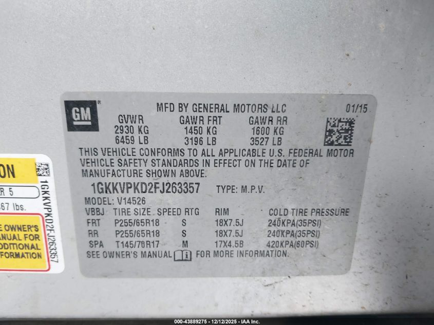 2015 GMC ACADIA 2015 року Бензин, 3.6, Повний привід, vin - 1GKKVPKD2FJ263357 з США