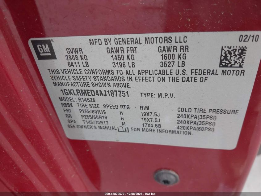 2010 GMC ACADIA 2010 року Бензин, 3.6, Передній привід, vin - 1GKLRMED4AJ187751 з США