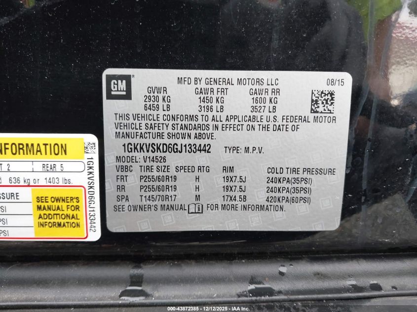 2016 GMC ACADIA 2016 року Бензин, 3.6, Повний привід, vin - 1GKKVSKD6GJ133442 з США