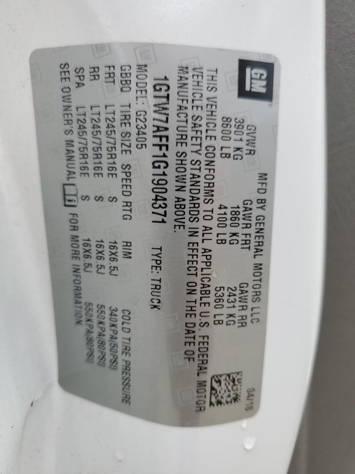 2016 GMC SAVANA 2016 року Бензин, 4.8, Задній привід, vin - 1GTW7AFF1G1904371 з США