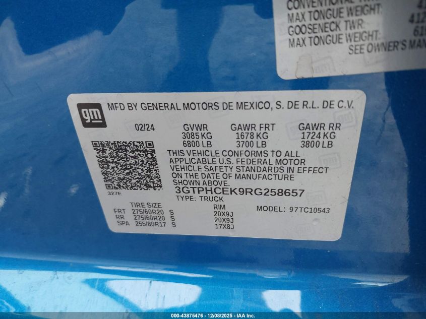 2024 GMC SIERRA 1500 2024 року Бензин, 2.7, , vin - 3GTPHCEK9RG258657 з США