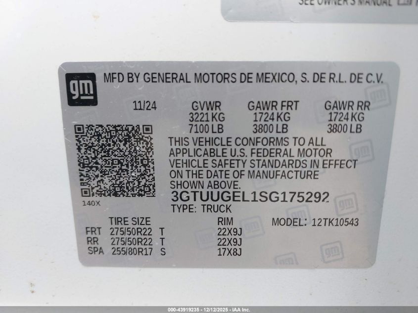 2025 GMC SIERRA 1500 2025 року Бензин, 6.2, Повний привід, vin - 3GTUUGEL1SG175292 з США