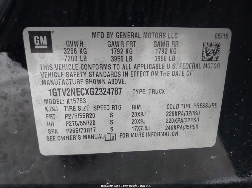 2016 GMC SIERRA 1500 2016 року Бензин, 5.3, Повний привід, vin - 1GTV2NECXGZ324787 з США