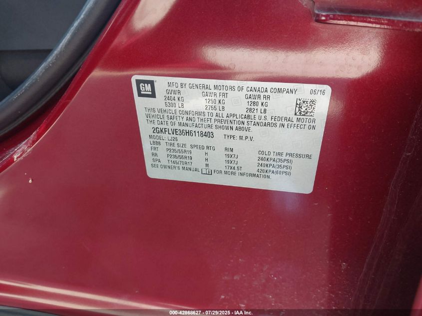 2017 GMC TERRAIN 2017 року Бензин, 3.6, Повний привід, vin - 2GKFLVE36H6118403 з США