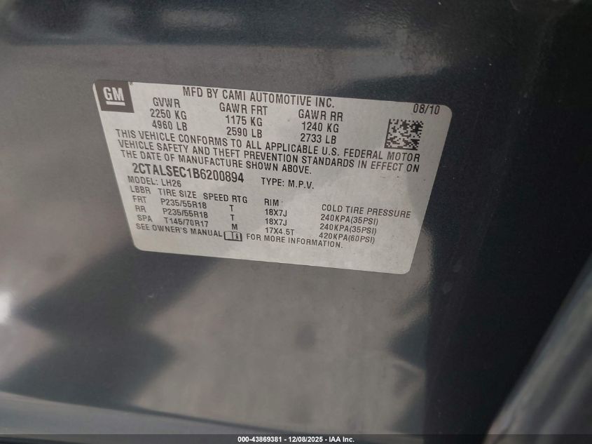 2011 GMC TERRAIN 2011 року Бензин, 2.4, Передній привід, vin - 2CTALSEC1B6200894 з США