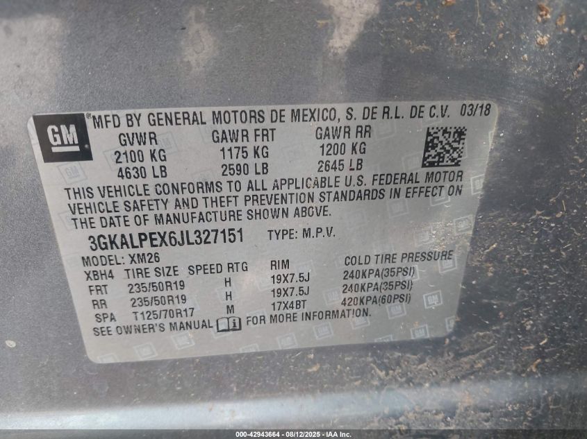 2018 GMC TERRAIN 2018 року Бензин, 2.0, Передній привід, vin - 3GKALPEX6JL****** з США