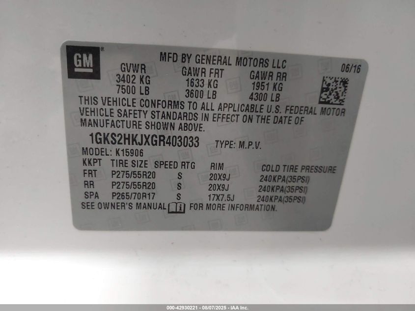 2016 GMC YUKON 2016 року Бензин, 6.2, Повний привід, vin - 1GKS2HKJXGR****** з США