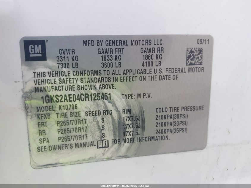 Колір БілийЦиліндри 8Привід Повний привідVIN 1GKS2AE04CR******Стан НевідомоУшкодження Передня або задняДата аукціону 2025-09-17