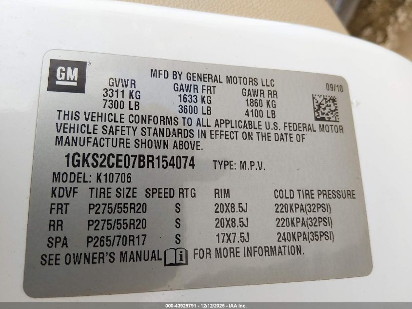 Колір БілийЦиліндри 8Привід Повний привідVIN 1GKS2CE07BR154074Стан СтаціонарноУшкодження Передня або задня