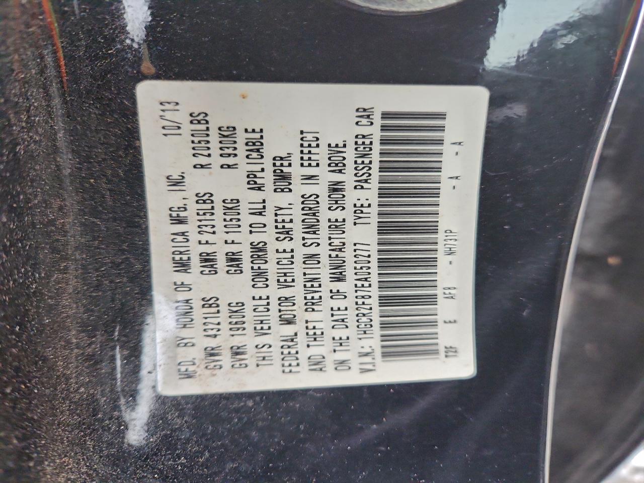 2014 HONDA ACCORD 2014 року Бензин, 2.4, , vin - 1HGCR2F87EA050277 з США