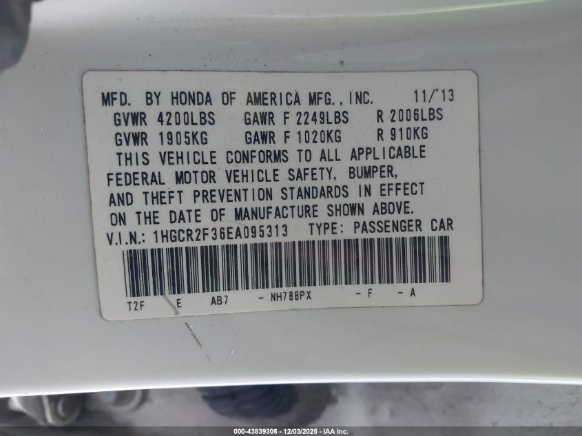 2014 HONDA ACCORD 2014 року Бензин, 2.4, Передній привід, vin - 1HGCR2F36EA095313 з США