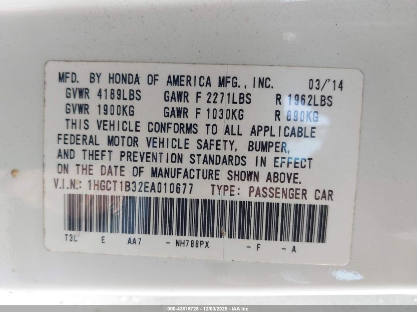 Колір БілийЦиліндри 4Привід Передній привідVIN 1HGCT1B32EA010677Стан Заводиться та їде (перевірено)Ушкодження Передня або задня AutoRIA