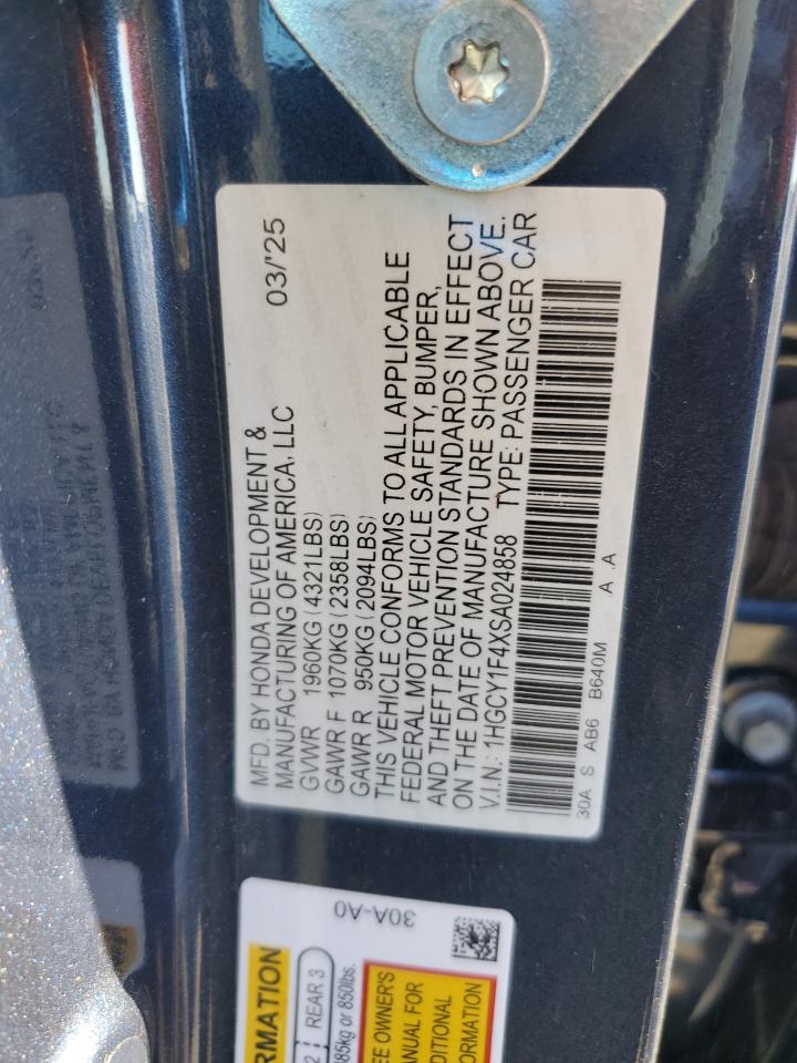 Колір СинійЦиліндри 4VIN 1HGCY1F4XSA024858Стан Заводиться та їде (перевірено)Ушкодження Задня AutoRIA