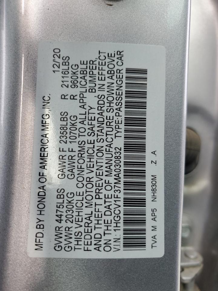 2021 HONDA ACCORD 2021 року Бензин, 1.5, , vin - 1HGCV1F37MA030832 з США