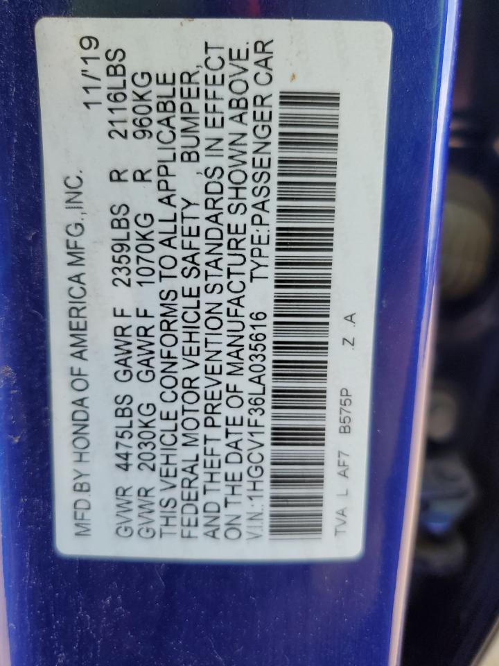 2020 HONDA ACCORD 2020 року Бензин, 1.5, , vin - 1HGCV1F36LA035616 з США