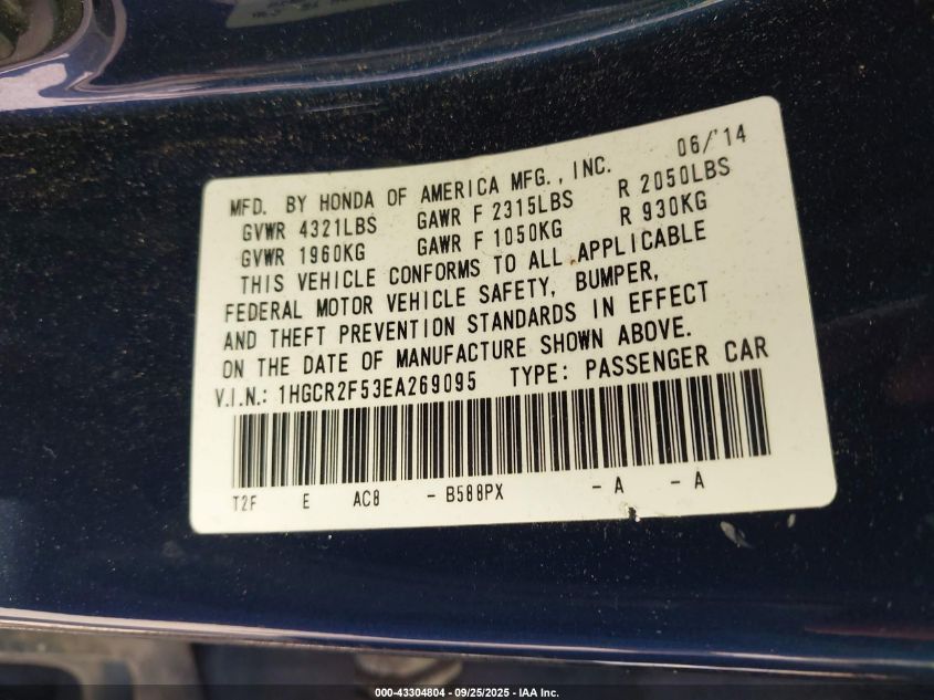 2014 HONDA ACCORD 2014 року Бензин, 2.4, Передній привід, vin - 1HGCR2F53EA269095 з США