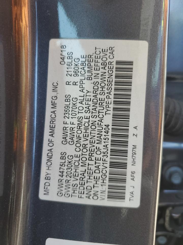 2018 HONDA ACCORD 2018 року Бензин, 1.5, , vin - 1HGCV1F35JA151404 з США