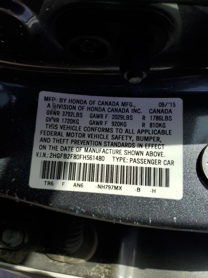 2015 HONDA CIVIC 2015 року Бензин, 1.8, , vin - 2HGFB2F80FH561480 з США