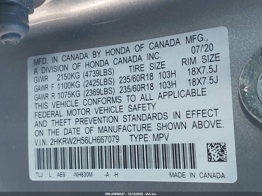 2020 HONDA CR-V 2020 року Бензин, 1.5, Повний привід, vin - 2HKRW2H56LH667079 з США