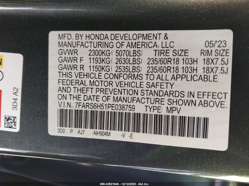 2023 HONDA CR-V HYBRID 2023 року Гібрид, 2.0, Повний привід, vin - 7FARS6H51PE038759 з США
