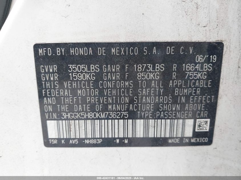 2019 HONDA FIT EX