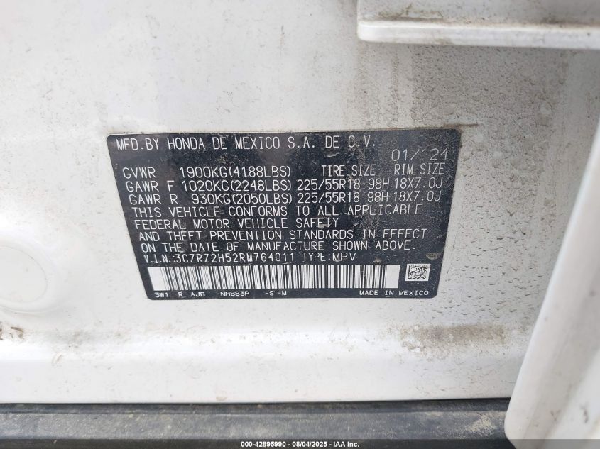 2024 HONDA HR-V 2024 року Бензин, 2.0, Повний привід, vin - 3CZRZ2H52RM764011 з США