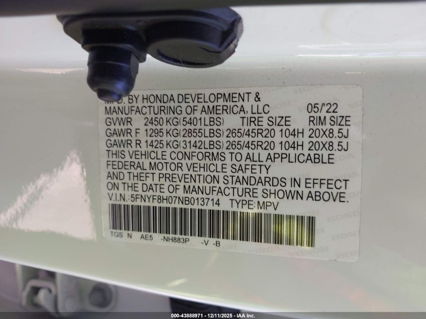Колір БілийЦиліндри 6Привід Повний привідVIN 5FNYF8H07NB013714Стан Заводиться та їде (перевірено)Ушкодження Передня або задня AutoRIA
