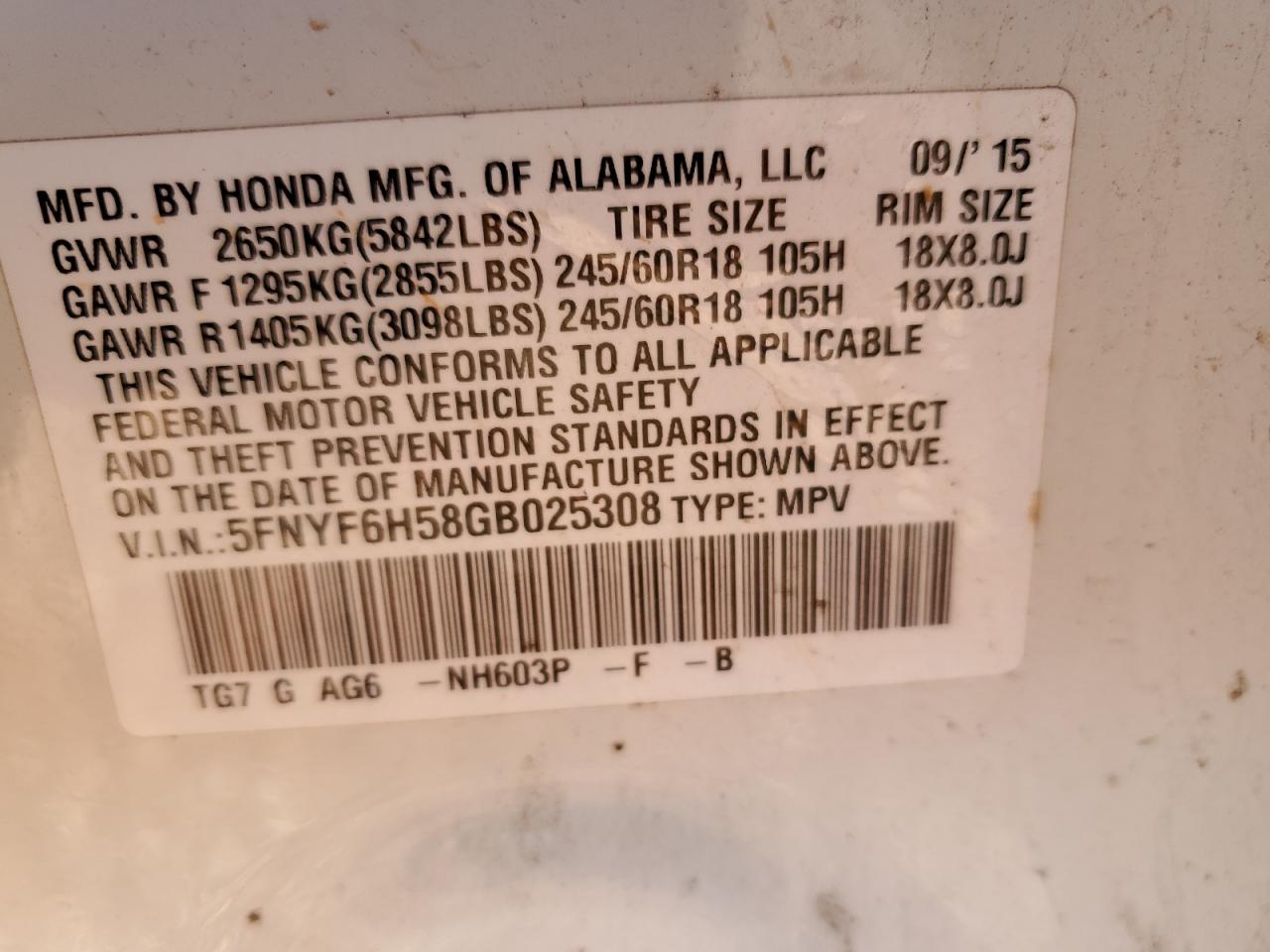 Колір БілийЦиліндри 6Привід Повний привідVIN 5FNYF6H58GB025308Стан Заводиться та їде (перевірено)Ушкодження Передня або задняДата аукціону 2025-06-19