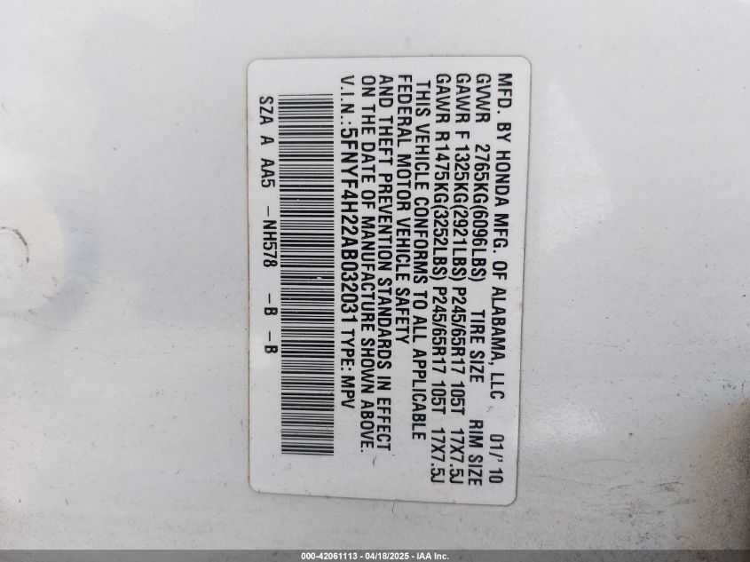 2010 HONDA PILOT EX