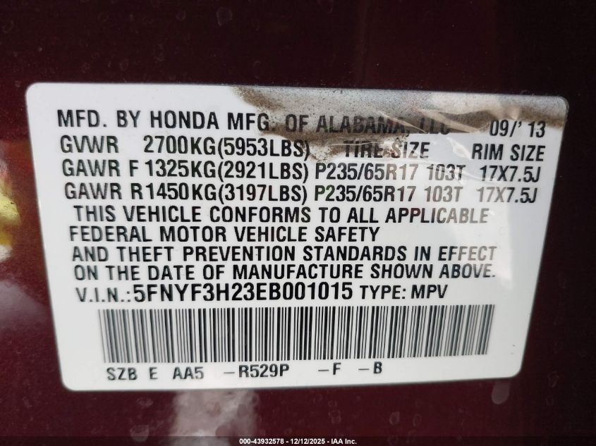 Колір БургундіяЦиліндри 6Привід Передній привідVIN 5FNYF3H23EB001015Стан Заводиться та їде (перевірено)Ушкодження Передня і задня AutoRIA