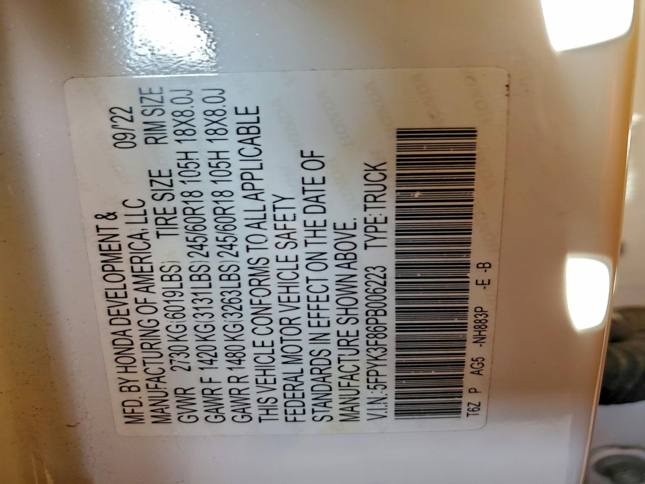 2023 HONDA RIDGELINE 2023 року Бензин, 3.5, Повний привід, vin - 5FPYK3F86PB006223 з США