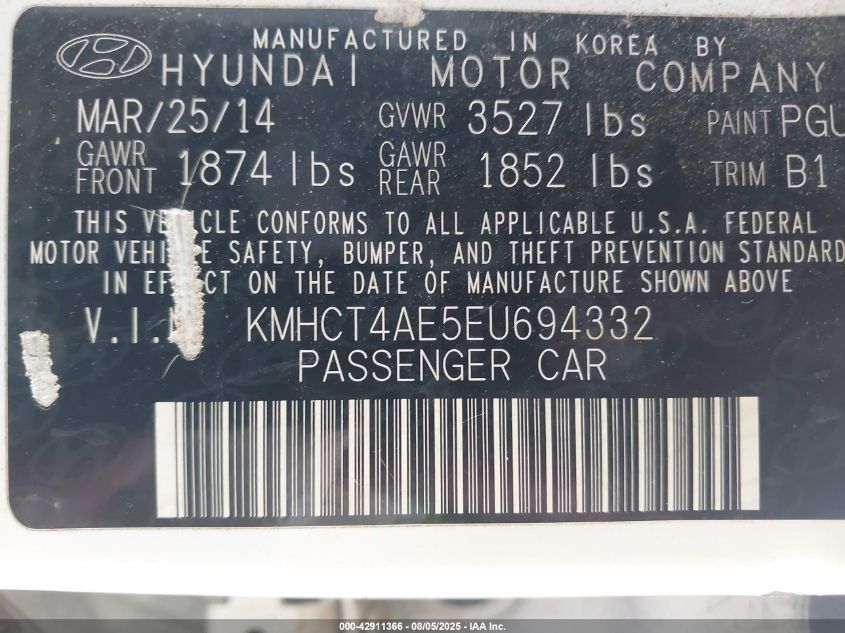 Колір БілийЦиліндри 4Привід Передній привідVIN KMHCT4AE5EU******Стан НевідомоУшкодження ЗадняДата аукціону 2025-09-02
