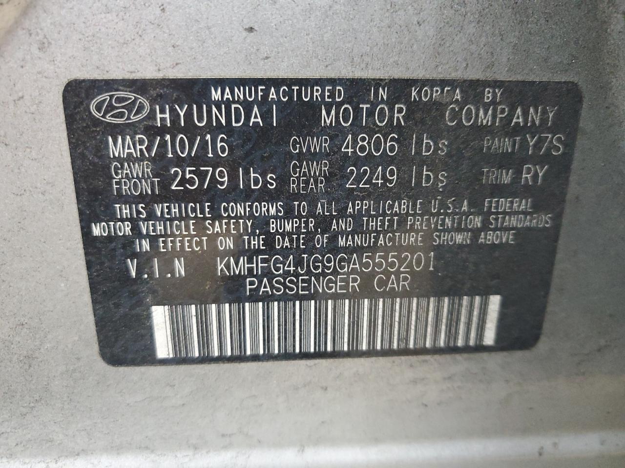 Колір СрібнийЦиліндри 6VIN KMHFG4JG9GA555201Стан Заводиться та їде (перевірено)Ушкодження Передня або задня AutoRIA