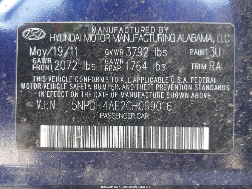 2012 HYUNDAI ELANTRA 2012 року Бензин, 1.8, Передній привід, vin - 5NPDH4AE2CH****** з США