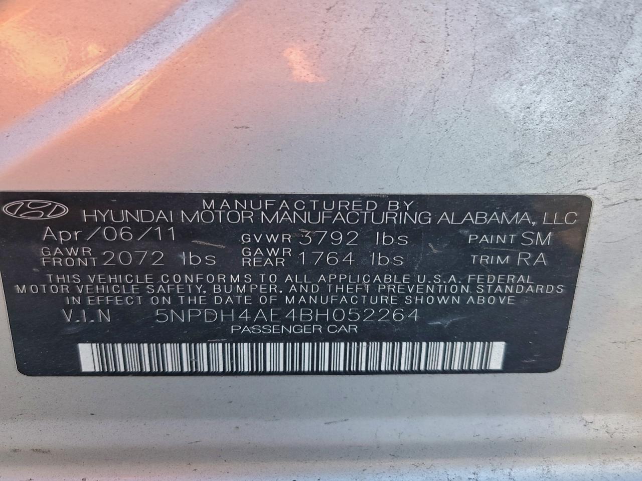 2011 HYUNDAI ELANTRA 2011 року Бензин, 1.8, , vin - 5NPDH4AE4BH052264 з США