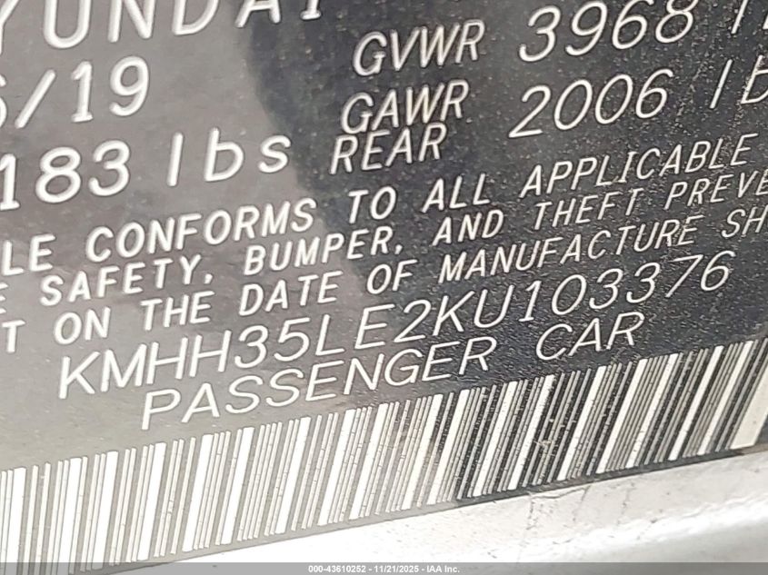 2019 HYUNDAI ELANTRA 2019 року Бензин, 2.0, Передній привід, vin - KMHH35LE2KU103376 з США
