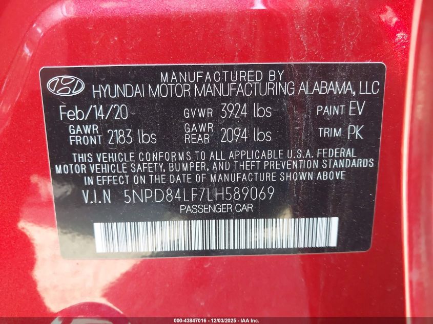 2020 HYUNDAI ELANTRA 2020 року Бензин, 2.0, Передній привід, vin - 5NPD84LF7LH589069 з США
