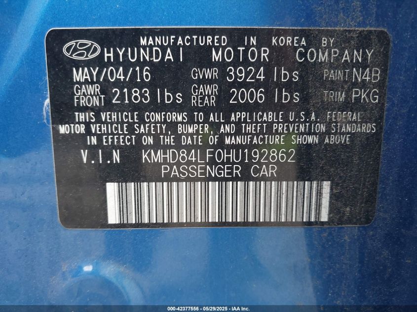 2017 HYUNDAI ELANTRA SE
