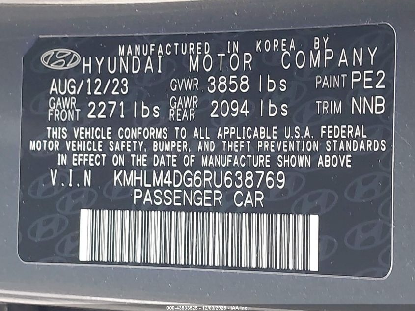 2024 HYUNDAI ELANTRA 2024 року Бензин, 2.0, Передній привід, vin - KMHLM4DG6RU638769 з США