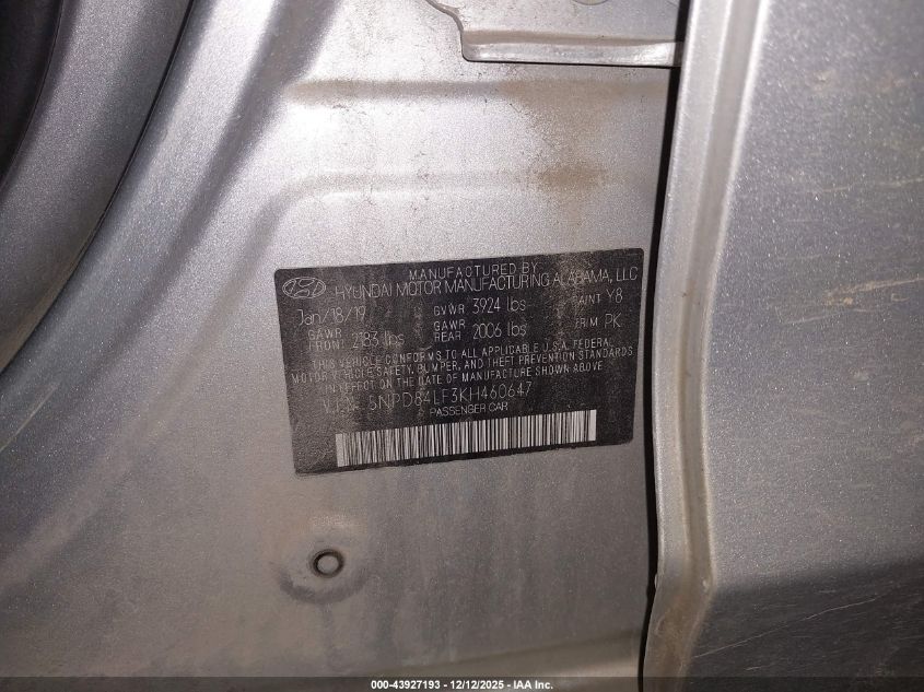 2019 HYUNDAI ELANTRA 2019 року Бензин, 2.0, Передній привід, vin - 5NPD84LF3KH460647 з США