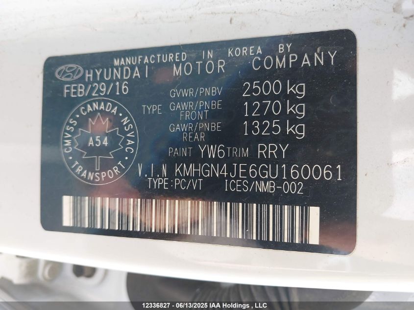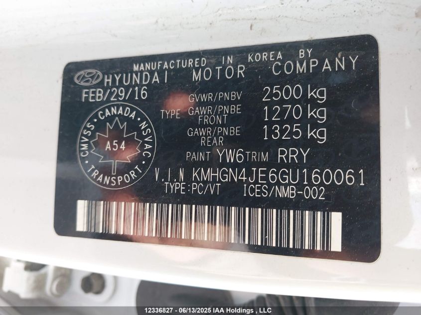 2016 HYUNDAI GENESIS 3.8L