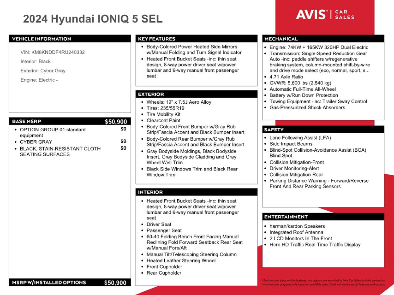2024 HYUNDAI IONIQ 5 2024 року Електричний, , Повний привід, vin - KM8KNDDF4RU240332 з США