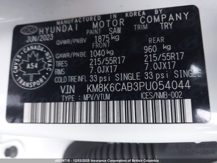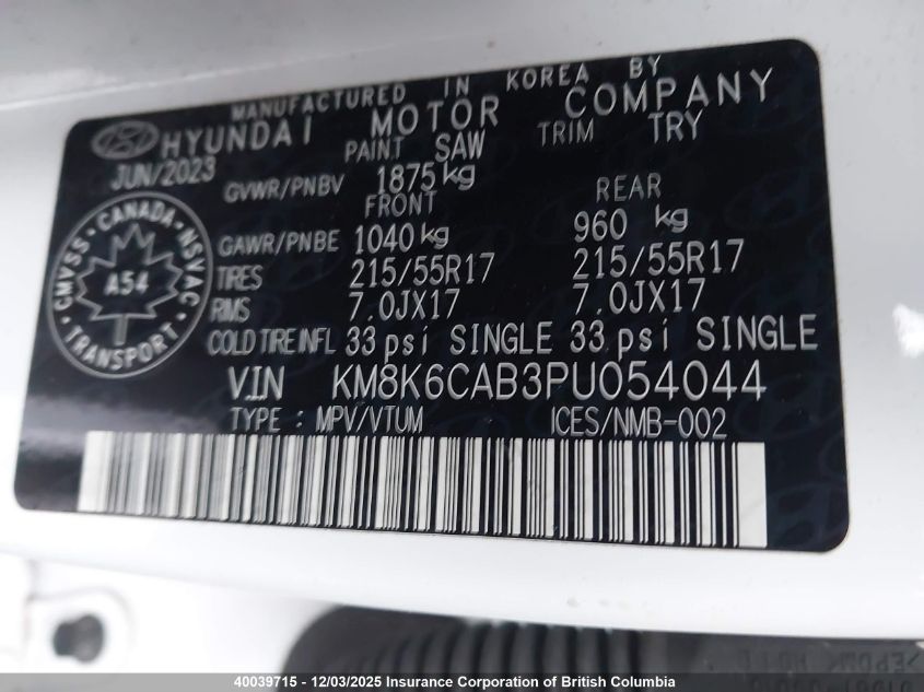 2023 HYUNDAI KONA 2023 року Бензин, , Повний привід, vin - KM8K6CAB3PU054044 з США