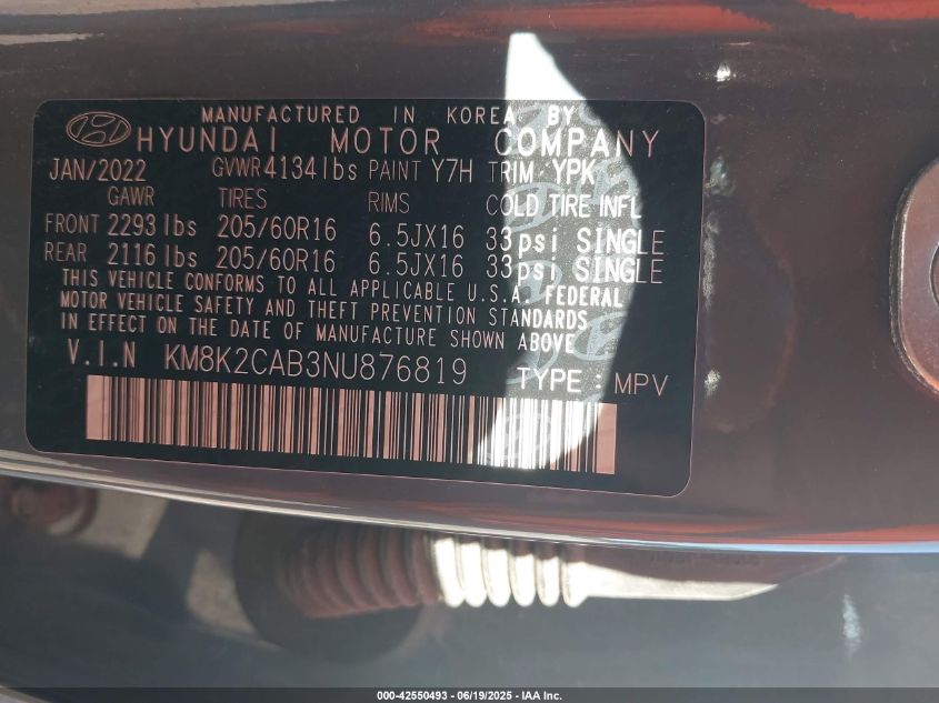2022 HYUNDAI KONA SEL