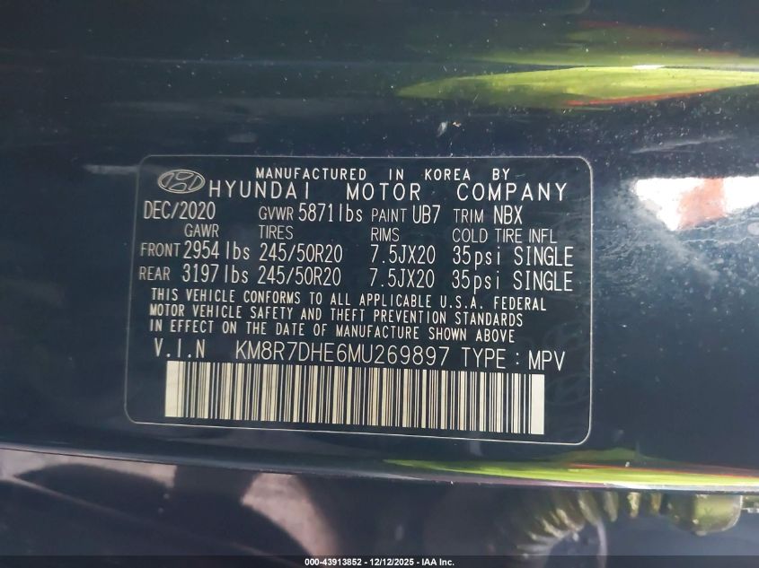 2021 HYUNDAI PALISADE 2021 року Бензин, 3.8, Повний привід, vin - KM8R7DHE6MU269897 з США