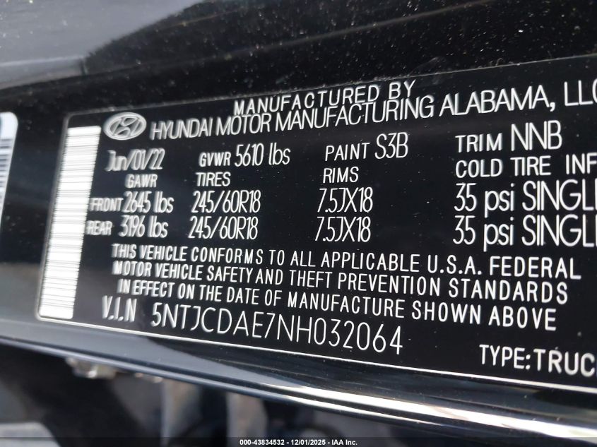 Колір ЧорнийЦиліндри 4Привід Повний привідVIN 5NTJCDAE7NH032064Стан Заводиться та їде (перевірено)Ушкодження Задня AutoRIA