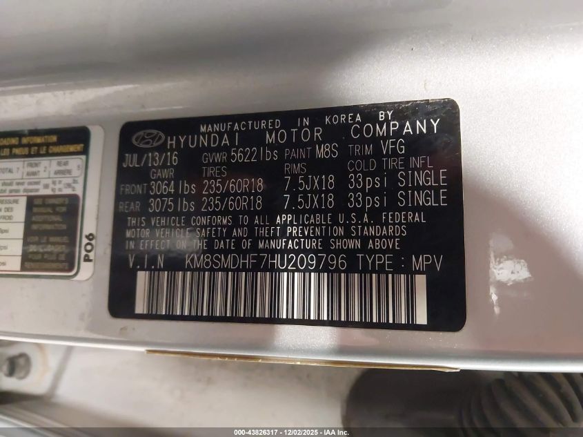 2017 HYUNDAI SANTA FE S
