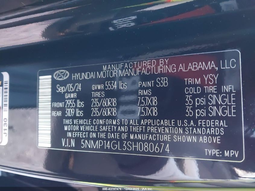 2025 HYUNDAI SANTA FE 2025 року Бензин, 2.5, Передній привід, vin - 5NMP14GL3SH080674 з США